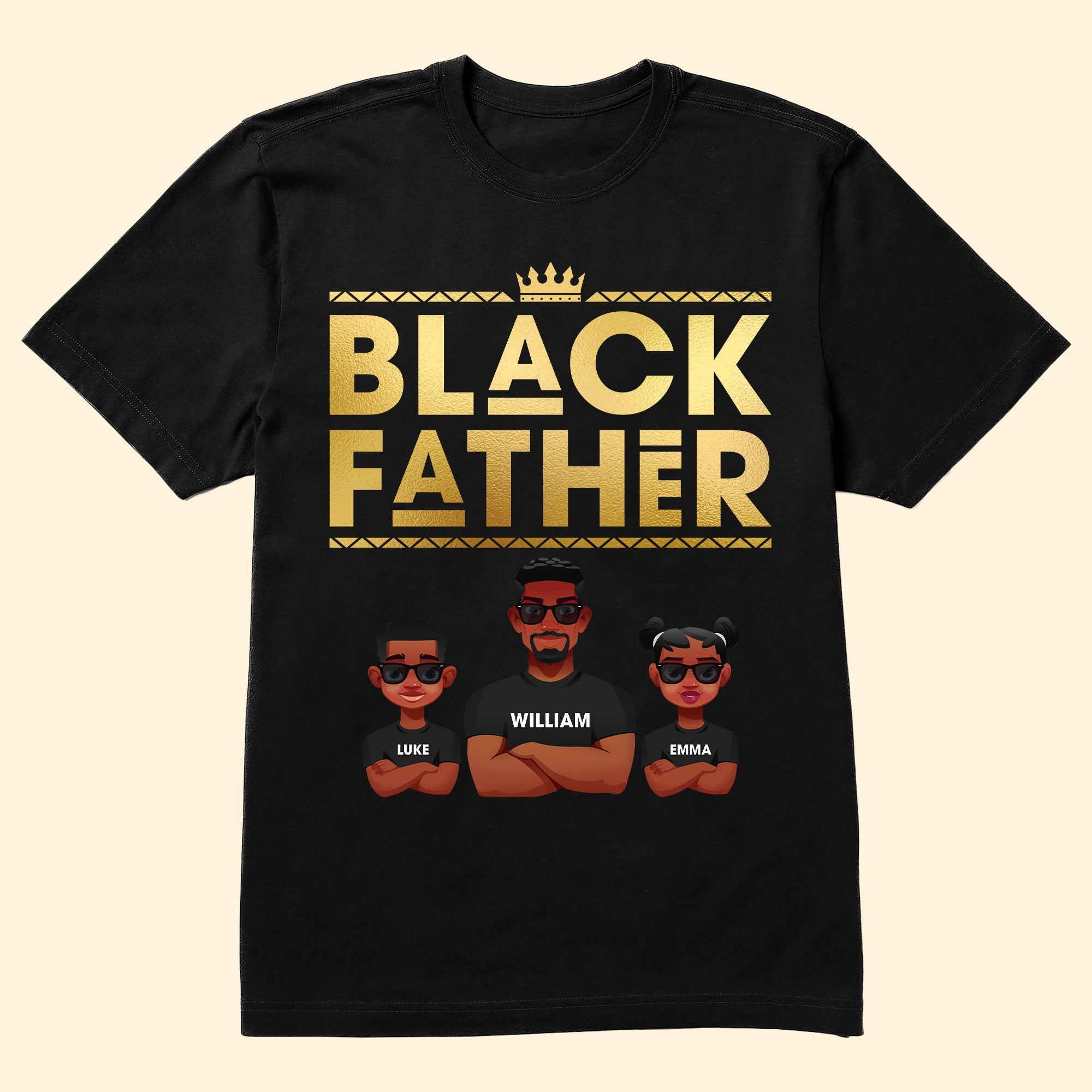 Whether worn on Father’s Day or any day of the year, this personalized shirt is sure to make a statement and bring joy to the heart of the recipient. Imagine the pride and happiness as the black father receives this thoughtful and personalized gift, knowing that his love and dedication are celebrated and cherished. Make Father’s Day unforgettable with a gift that embodies the strength and love of black fatherhood, bringing warmth and happiness with every wear.