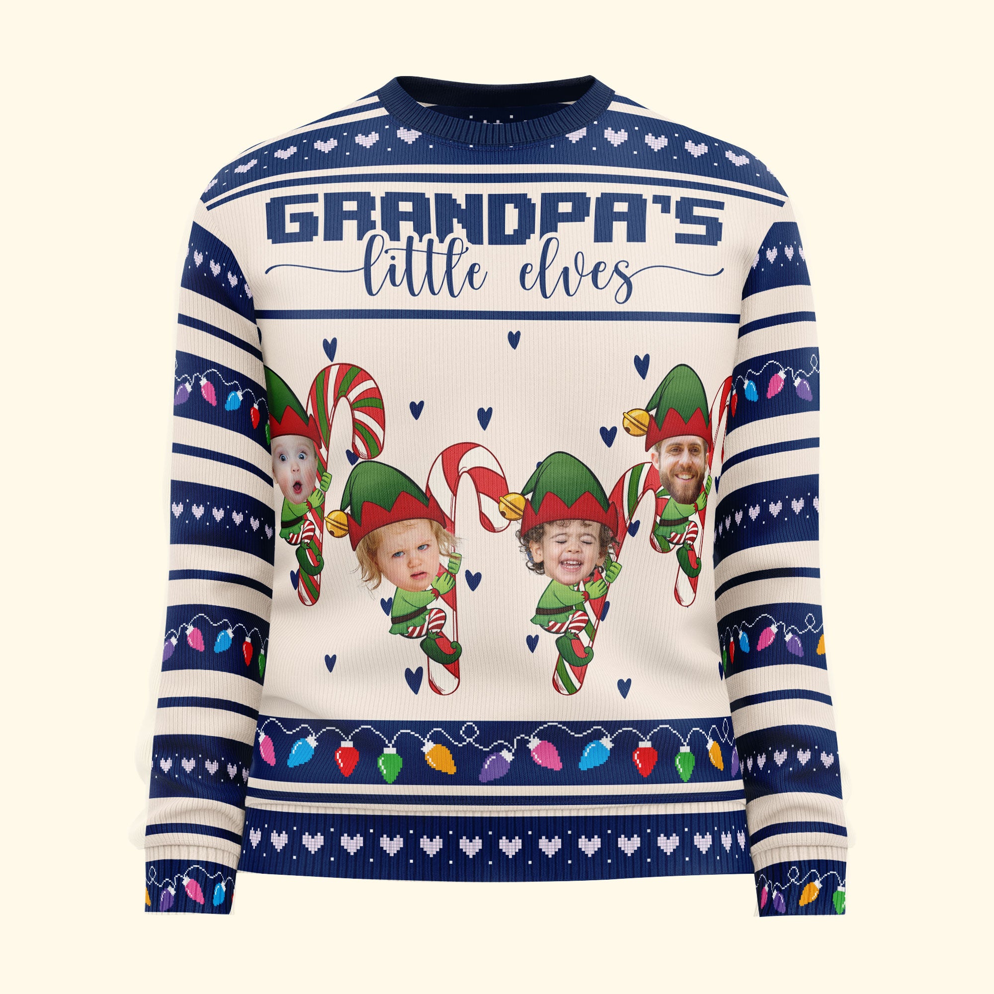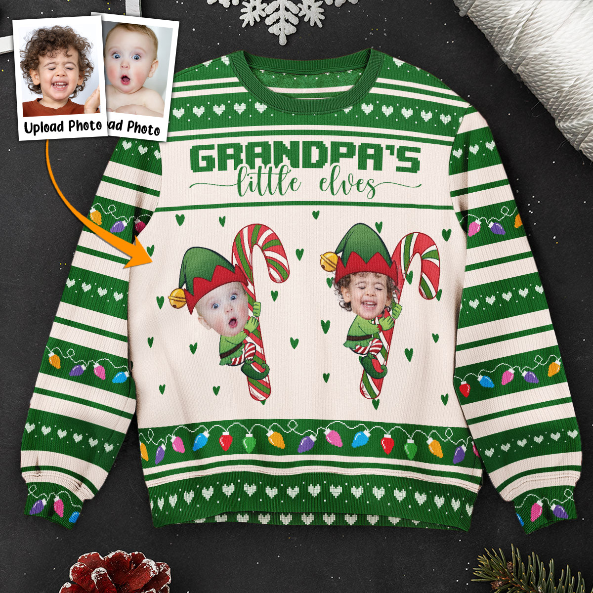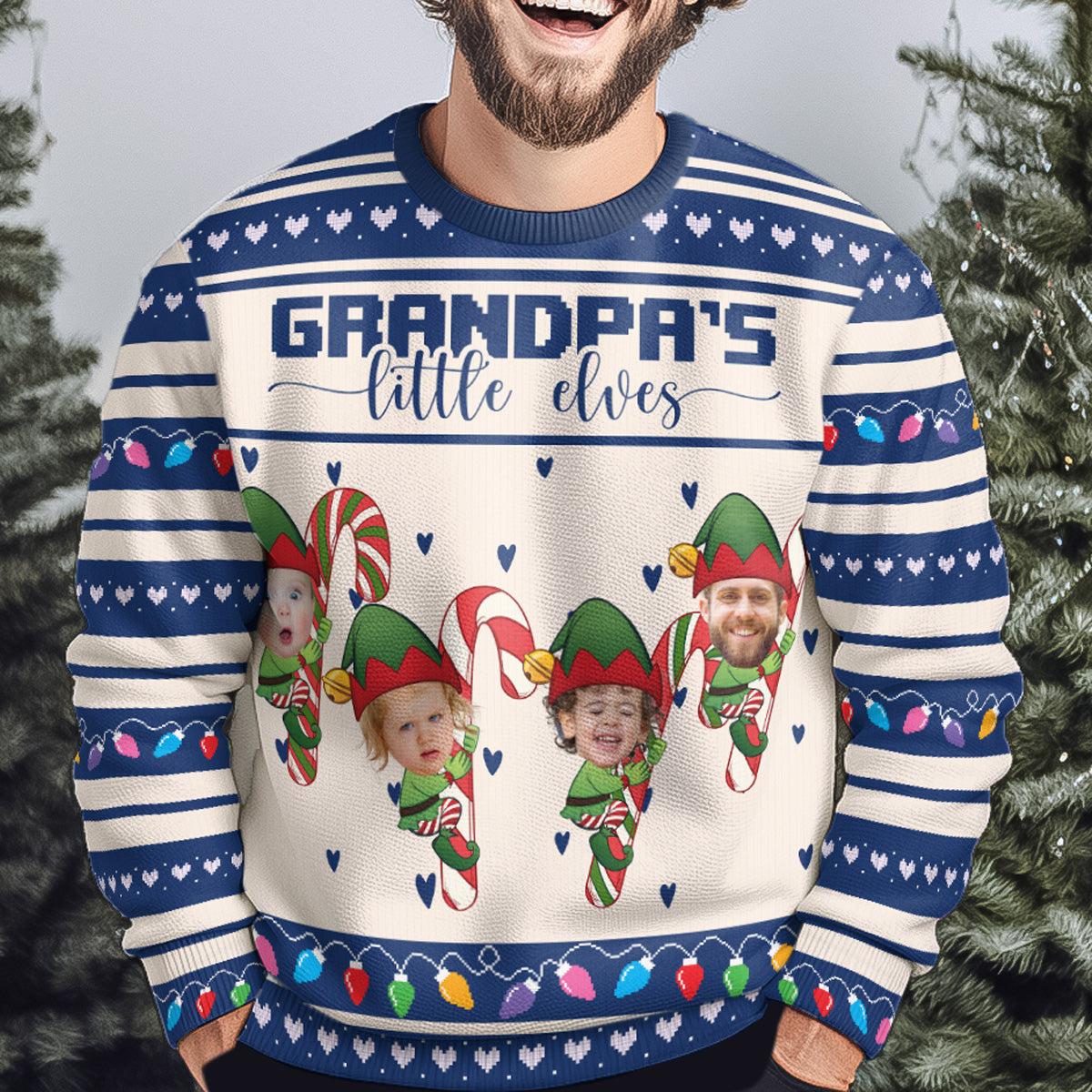Make the holidays extra special with our Personalized Ugly Sweater, featuring the playful phrase “Grandpa’s/Grandma’s little elves.” This fun and festive sweater lets you customize the grandkids as adorable elves, creating a one-of-a-kind gift that’s perfect for grandma or grandpa. Whether it’s for yourself or as a gift for family members, this sweater brings joy and laughter to any holiday gathering.