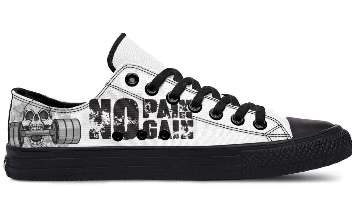 Elevate your fitness and street style with the Pain & Gain Gymnastic Pattern Black Lowtop Sneakers. These athletic shoes feature a striking black geometric gymnastic pattern, offering a sleek, modern aesthetic for the active individual. Engineered for both comfort and performance, the low-top silhouette provides maximum ankle mobility and flexibility, making them perfect for weightlifting, gym sessions, or everyday errands. Durable materials ensure long-lasting wear while the breathable design keeps your feet cool. Upgrade your shoe game with the perfect blend of fashion-forward design and functional gym gear.