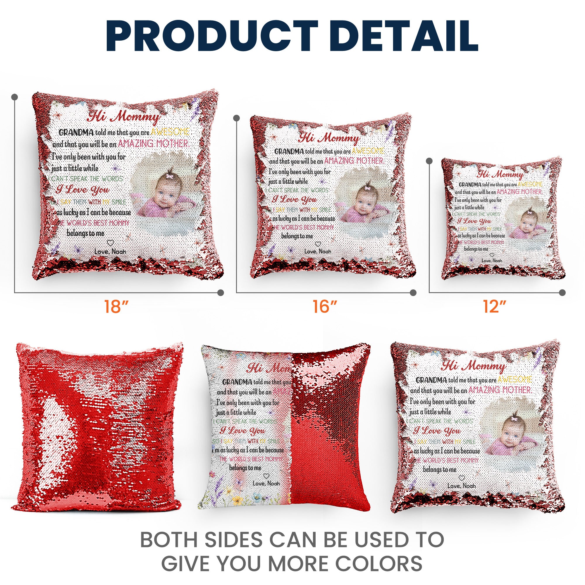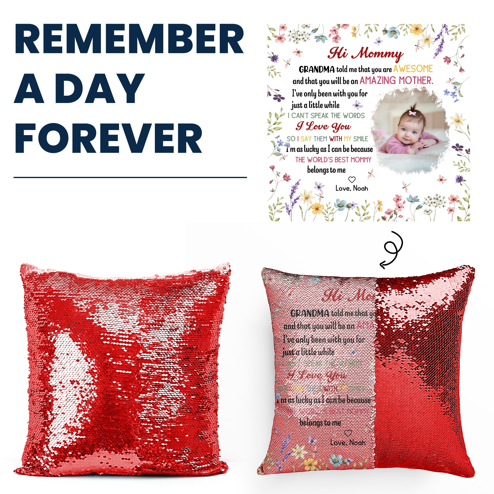 + Your image is printed across the entire front of the cushion cover. Flip the sequins by hand to reveal or conceal the personalized picture.